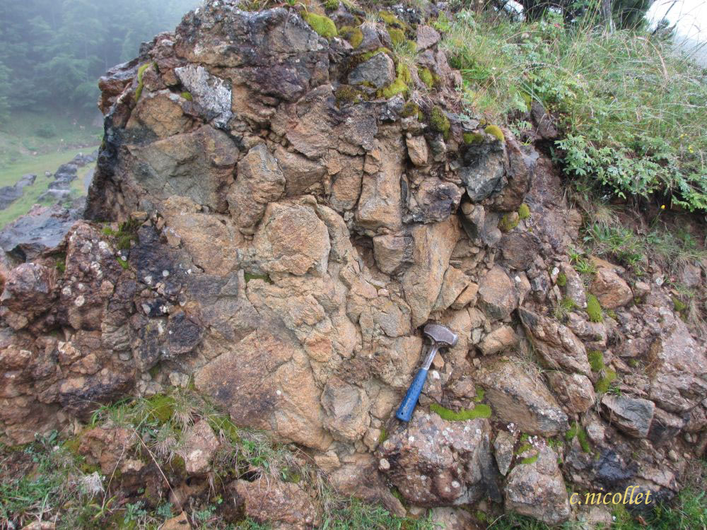 Pour comprendre le mode de mise en place de ces roches à l'affleurement, il faut s'intéresser aux brèches que l'on peut observer en bordures du massif.